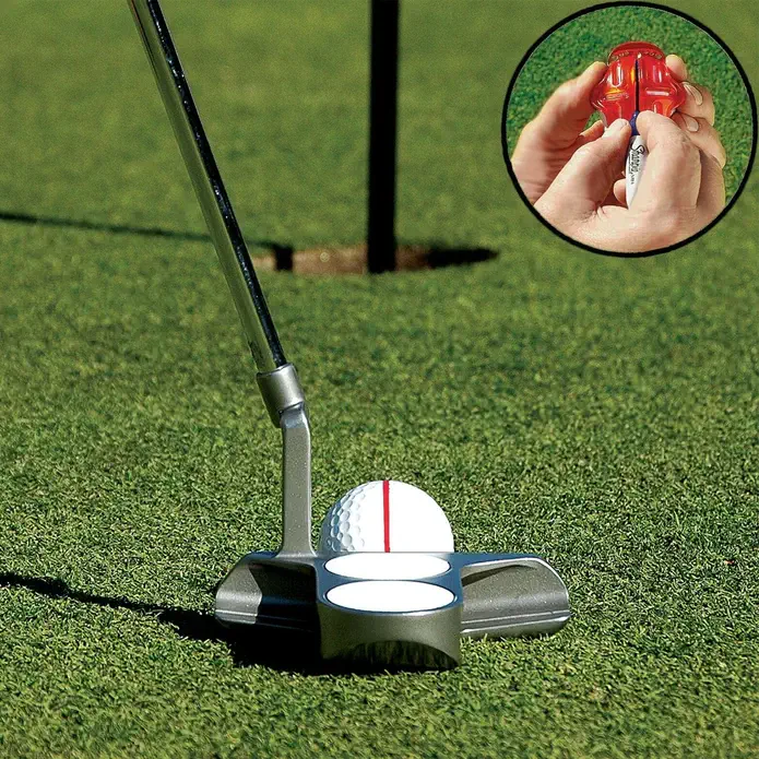 • Practice putting – When a good stroke is made, the line on the ball will roll straight; struck poorly, the line will appear to wobble as it rolls.